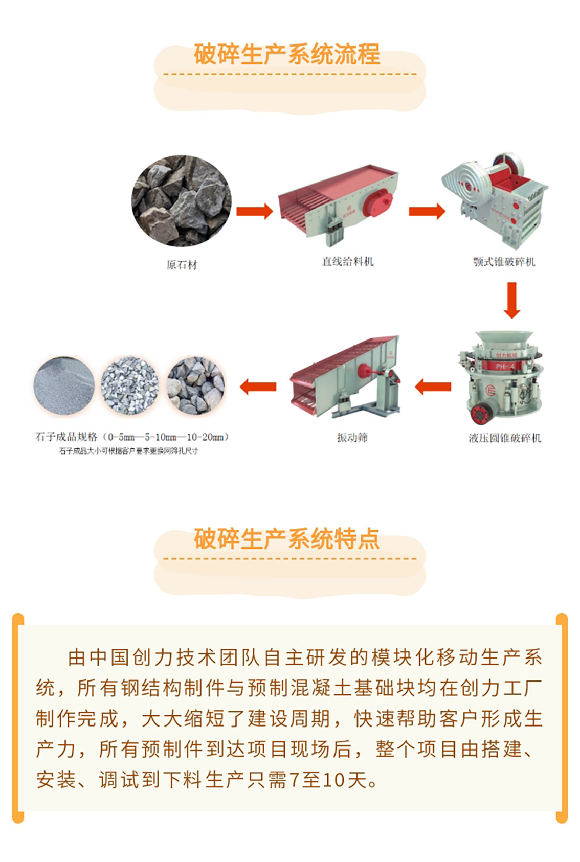 公司的主要產品PH系列多缸液壓高效圓錐機,是目前世界上最先進的、自動化程度最高的圓錐機。公司還生產與之配套的顎式破碎機、反擊式破碎機、給料機、振動篩等系列產品,同時單缸液壓圓錐機及高速顎式破碎機、旋回式破碎機、制砂機等已成功研發,為企業開拓了廣闊的市場前景。