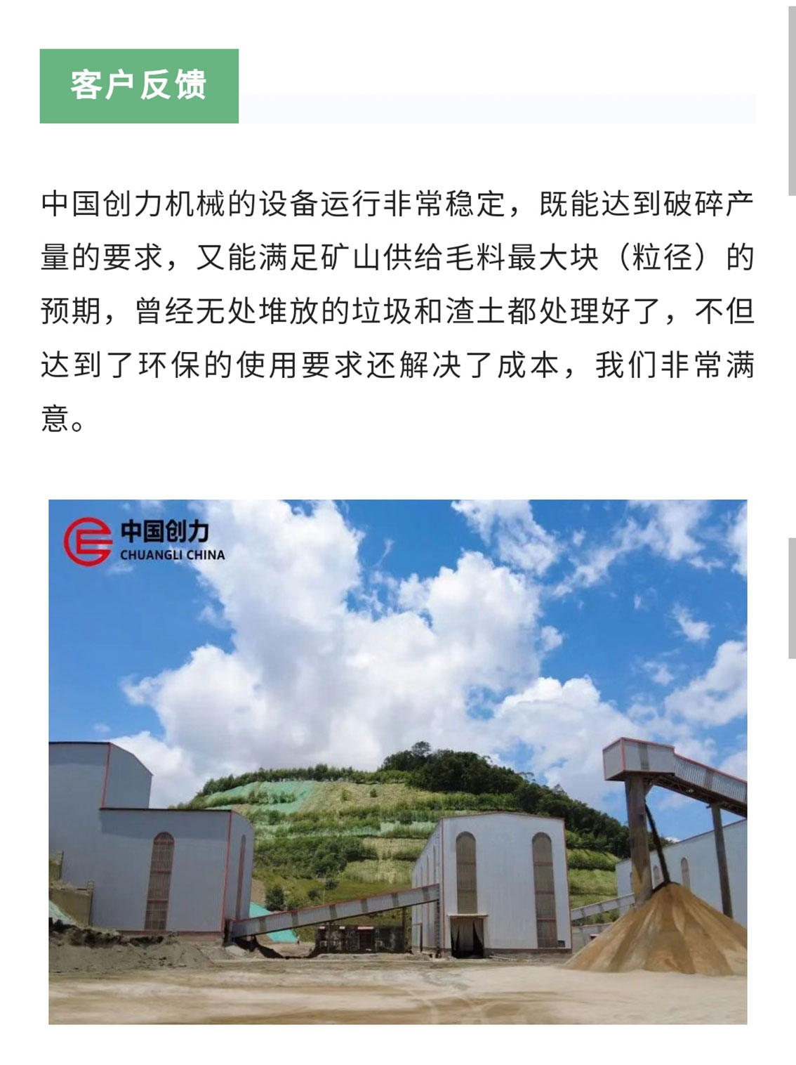 公司以質取勝,各類產品從設計到生產均高標準、嚴要求,以“做中國最好的破碎機”為企業愿景,力爭打造行業領先品牌。